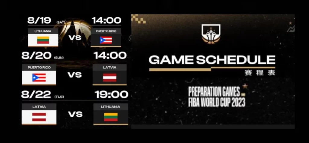 本次世界盃籃球熱身賽將在新北市新莊體育館展開,日期是8/19~8/22,為期三天。